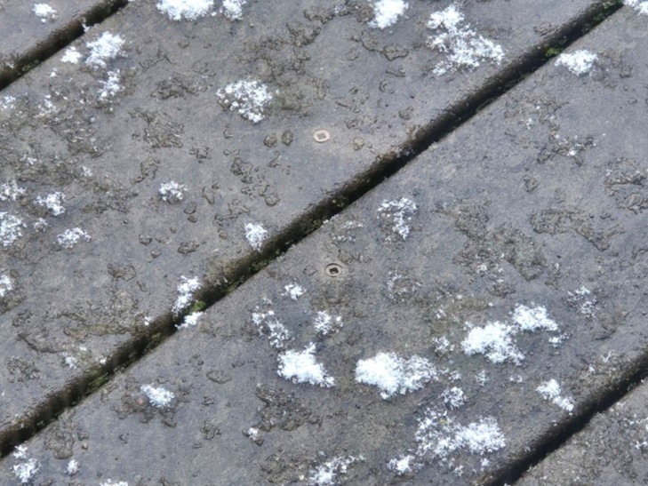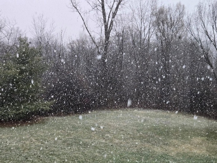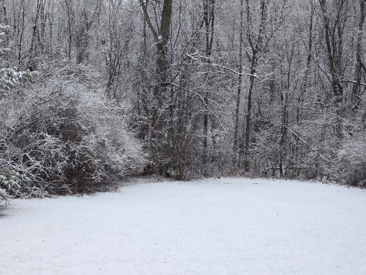 Snow fell again yesterday. It came down gently. Postage stamp-size flakes floating tentatively to the ground (Photo 1). Each flake perhaps expecting to melt upon landing. After all, only 24 hours ago the temperature was 55°F. But they did not. Each spread its square inch of whiteness on ground washed by a week of rain until they covered it all (Photo 2). And then more peaceful flakes built up into an intricate frosting that lay like a blanket of soft goose down covering the ground (Photo 3). Snow so delicate a stray breath could blow a hole in the quilt and tuft the flakes onto to another spot close by.